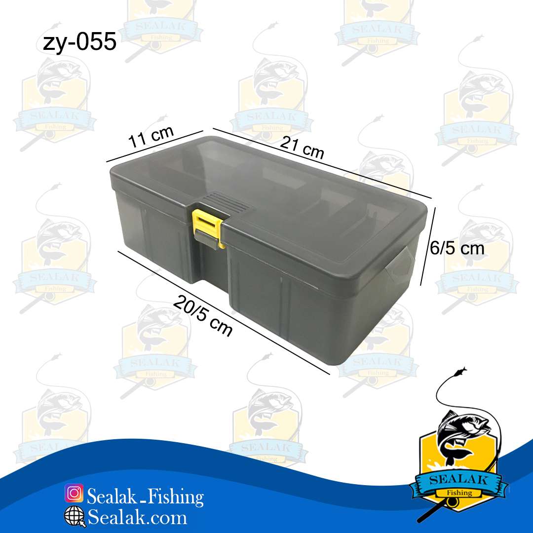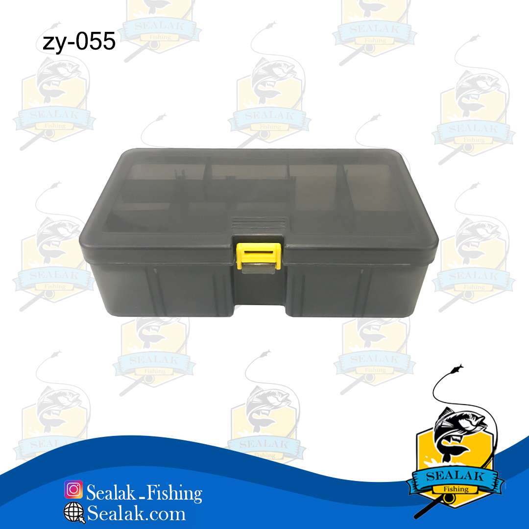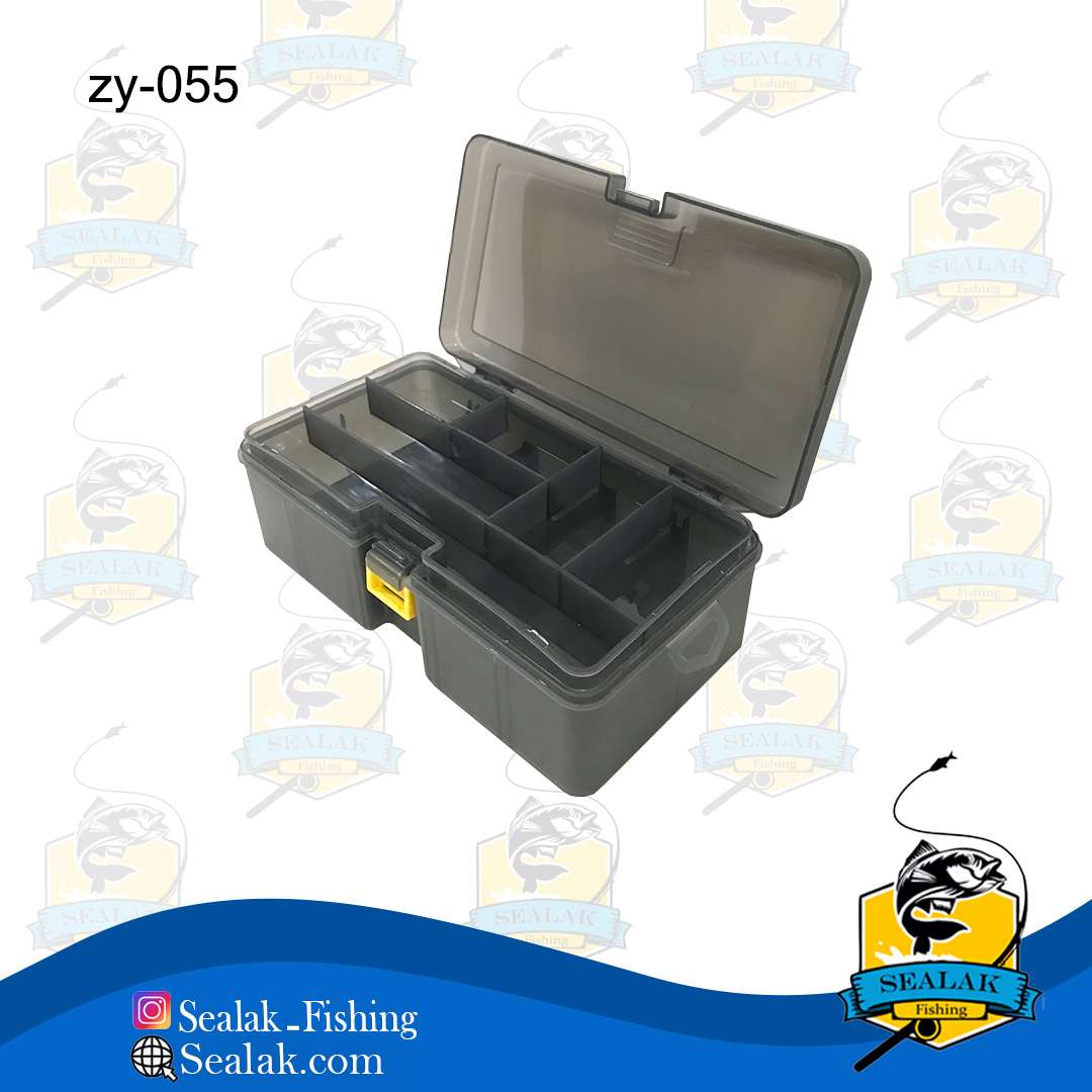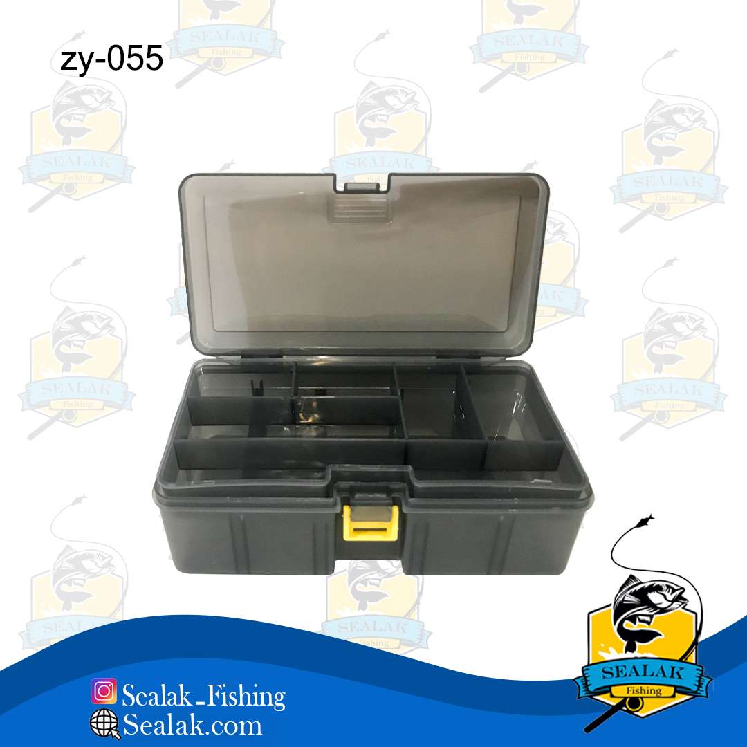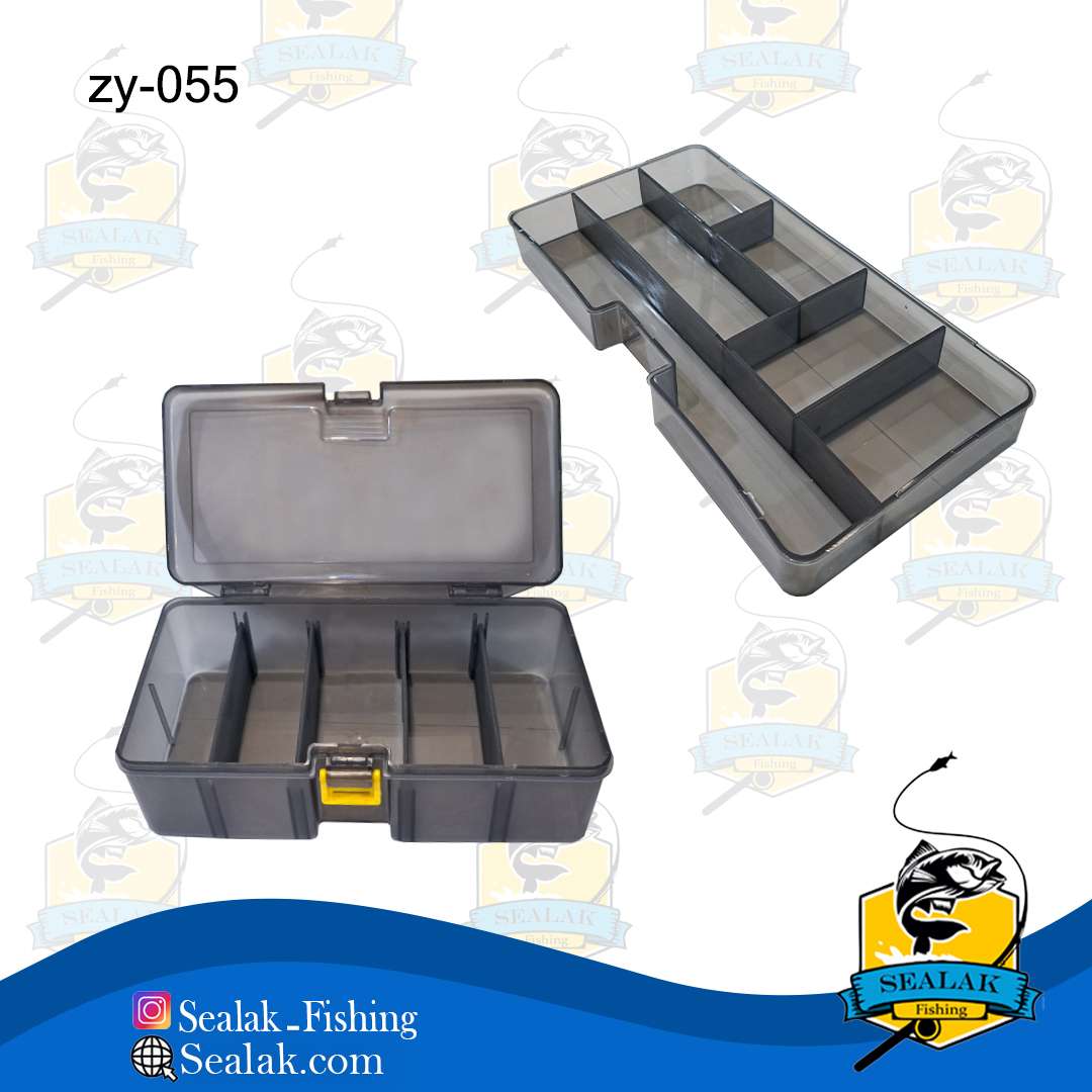 جعبه قلاب ماهیگیری مدل ZY-055 دوطبقه را می توان به عنوان جعبه ای چند منظوره نیز معرفی نمود . دارای دو قسمت فوقانی و تحتانی که هر یک دارای بخش های جداگانه با کارایی متفاوت هستند . قسمت رویی به صورت یک دست طراحی شده و به 6 بخش در سایز و ابعاد مختلف تقسیم شده است . این بخش ها با توجه به اندازه های متفاوتی که دارند برای انواع تجهیزات ماهیگیری همچون وزنه ، قلاب ، هرزگرد و طعمه های مصنوعی کوچک مناسب می باشد .