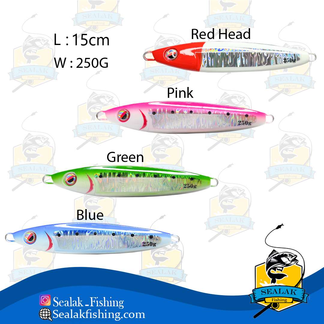 جیگ های ماهیگیری معمولا از جنس سرب ساخنته می شوند که علاوه بر ایجاد وزن زیاد و خاصیت فرو روندگی سریع در آب ، در برابر جریان های تند ، حرکت و تعادل خود را از دست نمی دهد و در جذب بیشتر ماهیان عملکرد بهتری از خود نشان می دهند . همچنین به دلیل سختی بالای بدنه ، در برابر دندهان های تیز ماهی مقاوم و به سادگی دچار شکستگی نخواهد شد . جیگ ماهیگیری برند littma مدل JK250G برای ماهیگیری به روش جیگینگ در محیط های دریایی عمیق کاربرد دارد .