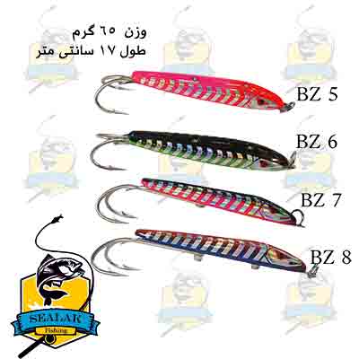 طعمه های مصنوعی ماهیگیری مدل BZ5-6-7-8 که در رنگ بندی های متنوع و جذابی عرضه شده اند برای ماهیگیری به روش ترولینگ عملکرد بسیار خوبی دارد. این طعمه ها از جنس پلاستیک فشرده شده ساخته شده اند و در اصطلاح به آنها طعمه های استخوانی گفته می شود. ظاهر و رنگ هایی که در این طعمه ها مورد استفاده قرار گرفته شده ، همگی تداعی کننده نوعی از ماهاینی است که در دریا وجود دارد ، به همین دلیل دارای قدرت صید بالایی هستند .