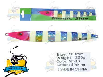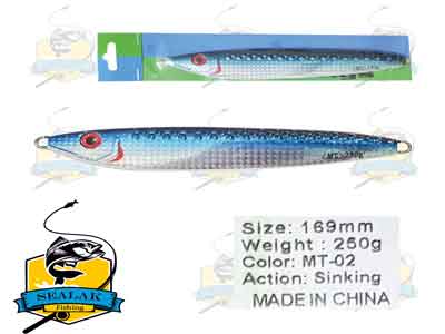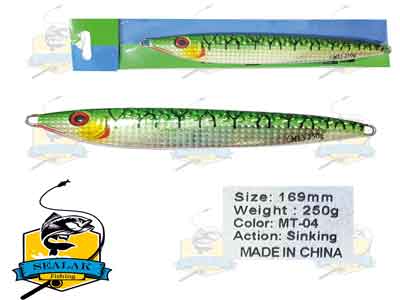 ماهیگیری با استفاده از طعمه های مصنوعی به روش های مختلف دارای طرفداران بسیاری در سراسر دنیاست . از رودخانه ها گرفته تا اقیانوس ها و حتی دریاچه های مصنوعی با توجه به گونه های موجود و هدف ماهیگیر ، با استفاده از لوری ها ، قاشقک ها ، اسپینرها و جیگ ها می توان در آنها به صید ماهی پرداخت . طعمه های مصنوعی ماهیگیری مدل MJ250G1 برند MT برای ماهیگیری به روش جیگینگ در اعماق دریا کاربرد دارند .