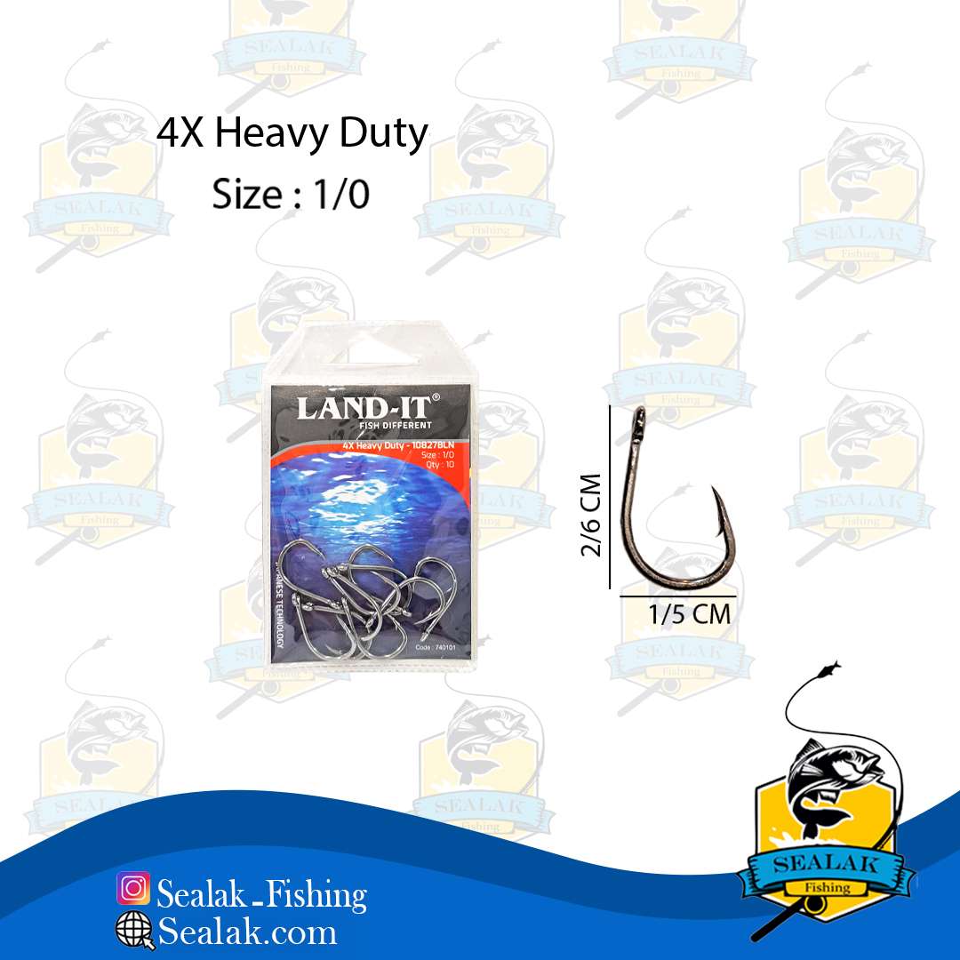 قلاب ماهیگیری برند Land-It مدل 4X-Heavy-Duty از قوی ترین نوع قلاب های پایه کوتاه برای ماهیگیری در آب شور و صید ماهیان سایز بزرگ به شمار می رود . این قلاب ها بر خلاف بسیاری از قلاب های هم نوع خود که برای ماهیگیری در اب شیرین طراحی شده اند و در صورت استفاده در آب شور طی مدت زمان کوتاهی عملکرد اولیه خود از دست می دهند ، توانسته اند در فواصل زمانی بلند مدت کارایی خوب خود را حفظ کنند و عملکرد بالایی را از خود نشان دهند .