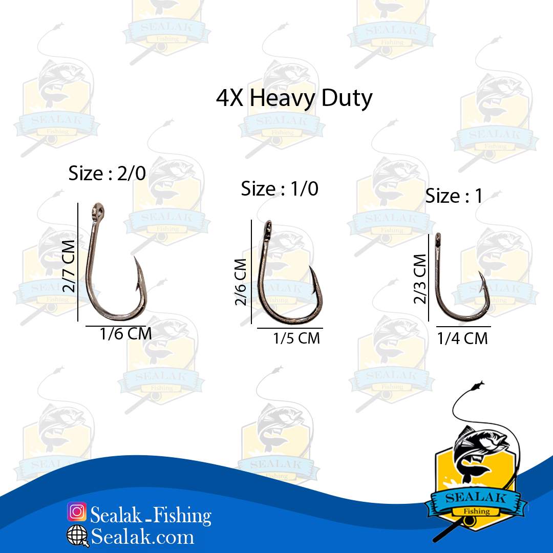 مفتول یا سیم استفاده شده در ساخت این قلاب ها 4 برابر قوی تر از نمونه های معمولی هستند و می توانند به خوبی در برابر مقدار زیادی از فشار وارده توسط ماهیان جنگنده دریایی مقاومت کند . در ساخت این قلاب ها از مرغوب ترین و با کیفیت ترین مواد ژاپنی استفاده شده و در برابر خورگی آب شور مقاوم است . قلاب های 4X دارای ویژگی های تقریبا متفاوتی از قلاب های پایه کوتاه استاندارد می باشد و این ویزگی ها شامل پایه های نسبتا کوتاه تر و دهنه ی بازتر می باشد .