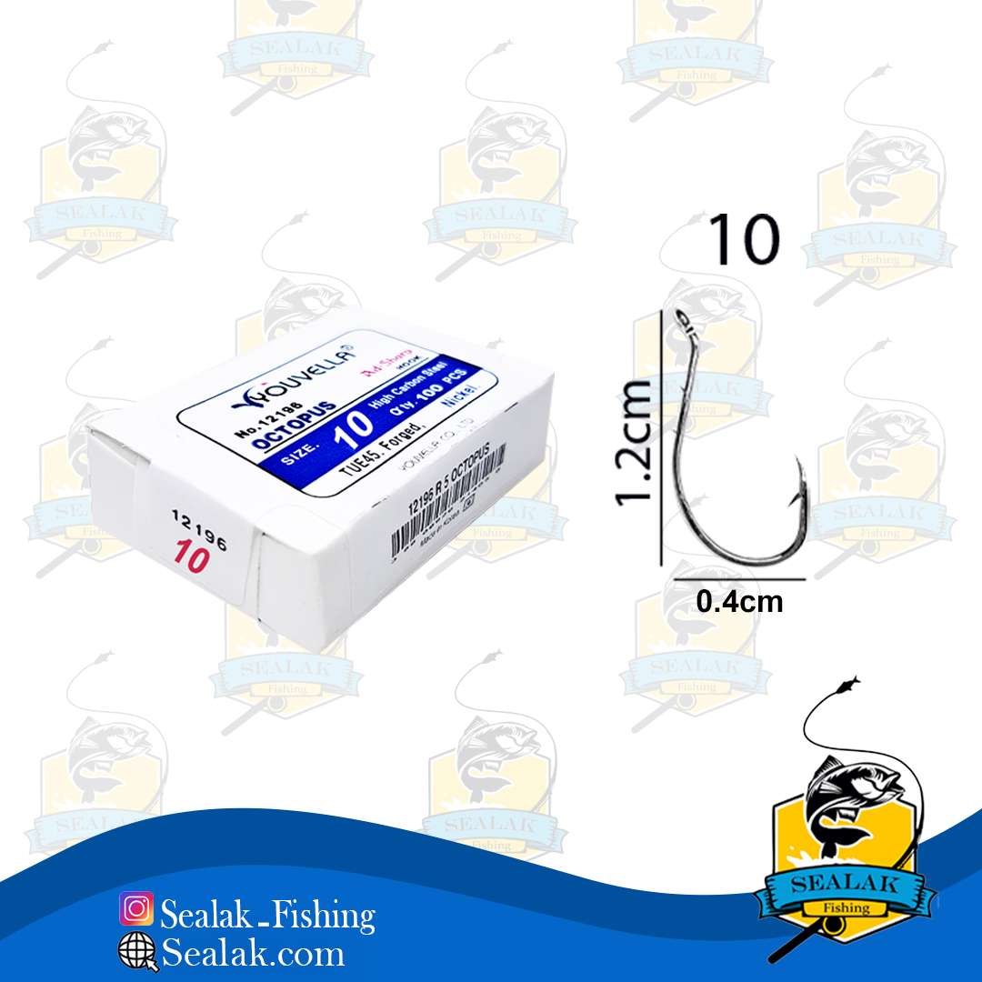 شرکت کره ای یوولا با عرضه انواع بیشماری از قلاب های ماهیگیری باکیفیت ، توانسته است در سراسر کره خاکی طرفداران زیادی پیدا کند. بیشترین نوع قلاب هایی که در ایران مورد استفاده قرار می گیرند قلاب های پایه کوتاه و پایه بلند هستند. قلاب های پایه کوتاه معمولا برای صید ماهیانی که دهان گوشتی دارند مانند کپور و قلاب های پایه بلند برای صید ماهیان تهاجمی همچون ماهی سوف استفاده می گردد. قلاب ماهیگیری سایز 10 کد Youvella-12196 مدل پایه کوتاه از سری قلاب های Octopus می باشد.