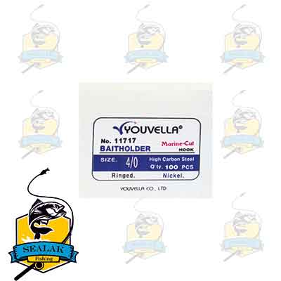 ارائه انواع قلاب های با کیفیت در سایز ، اشکال ، جنس و رنگ های گوناگون از محصولات شرکت کره ای یوولا می باشد . این شرکت با بهره گیری از تجربه زیاد در صنعت اهن و فولاد و فناوری های به روز و پیشرفته ی فشرده سازی و ترکیب کربن و استیل توانسته است در زمینه تولید قلاب ماهیگیری جایگاه خاصی در بین تولید کنندگان عمده وسایل و محصولات ماهیگیری در سطح جهانی پیدا کند. قلاب ماهیگیری شماره 4/0 مدل Youvella-11717 از سری قلاب های نگه دارنده طعمه یا Bait Holder می باشد.