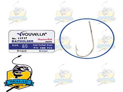 قلاب ماهیگیری شماره 8/0 مدل Youvella-11717 دارای تحمل وزنی بالاست که برای صید ماهاین بزرگ و سنگین همچون اسبله عالی و مناسب می باشد. این قلاب با داشتن خارهایی در پشت پایه خود امکان نگه داری طعمه های بیشتری را فراهم نموده است. ماهاین بزرگ که دهان های گشادتری دارند معمولا به سمت طعمه های بزرگ جذب می شوند و به دلیل دارا بودن دهان بزرگ به سرعت طعمه خود را می بلعند و اسان تر به دام خواهند افتاد. هنگام صید هر نوع ماهی باید دقت شود که تا جایی که امکان دارد قلاب از دید ماهی پنهان بماند و طعمه به گونه ای بر روی قلاب قرار گیرد که ان را بپوشاند.