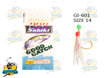 قلاب ماهبگیری Sabiki مدل Good Catch-601 مجموعه ای از قلاب های بهم پیوسته هستند که جهت صید ماهیان کوچک در نزدیکی ساحل و آب های عمیق دریایی مورد استفاده قرار می گیرد . این قلاب ها به دلیل ساخته شدن در ژاپن با نام سابیکی یا Sabiki شناخته می شوند ، که نوعی روش ماهیگیری نیز می باشد . این نوع قلاب ها معمولا در آب شور کاربرد فراوانی دارد ، هر چند ممکن است در آب شیرین نیز مورد امتحان قرار گیرد و عملکرد بسیار خوبی نیز داشته باشد .