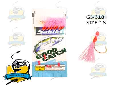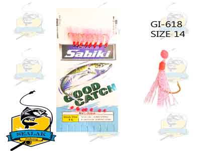 قلاب ماهیگیری Sabiki مدل Good Catch-618 به صورت حرفه ای و تخصصی برای صید ماهیان زنده در آب شور طراحی شده اند . کاربرد این نوع ریسه ها به قدری زیاد است که برخی از شرکت ها تولید لوازم ماهیگیری به تولید چوب های تخصصی جهت استفاده از رشته قلاب های سابیکی پرداخته اند . اگر از ماهیگیران حرفه ای سوال شود که بهترین نوع طعمه برای صیدی موفق چیست ؟ به طور قطع به شما پاسخ خواهند داد ، طعمه زنده (ماهی زنده) بهترین انتخاب است . صید ماهی زنده ممکن است کاری دشوار باشد اما با استفاده از ریسه های سابیکی به طور قطعی ، می توان حشینه های کوچک را صید نمود .