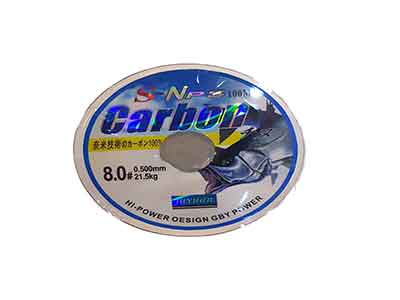 یکی از ابزار و وسایل مورد نیاز و کاربردی در امر ماهیگیری نخ ماهیگیری می باشد . امروزه انواع نخ های ماهیگیری در سایزها ، رنگ ها و جنس های متنوع توسط بسیاری از شرکت های سازنده وسایل و تجهیزات ماهیگیری تولید می گردد. تنوع محیط ها و روش های ماهیگیری باعث گردیده تا این نخ ها به منظور کاربرد های خاص یا عمومی تولید گردند. نخ ماهیگیری برند Carbon شماره 0.50 را با توجه به رنگ سفید و نامرئی آن در بسیاری از محیط ها استفاده نمود .