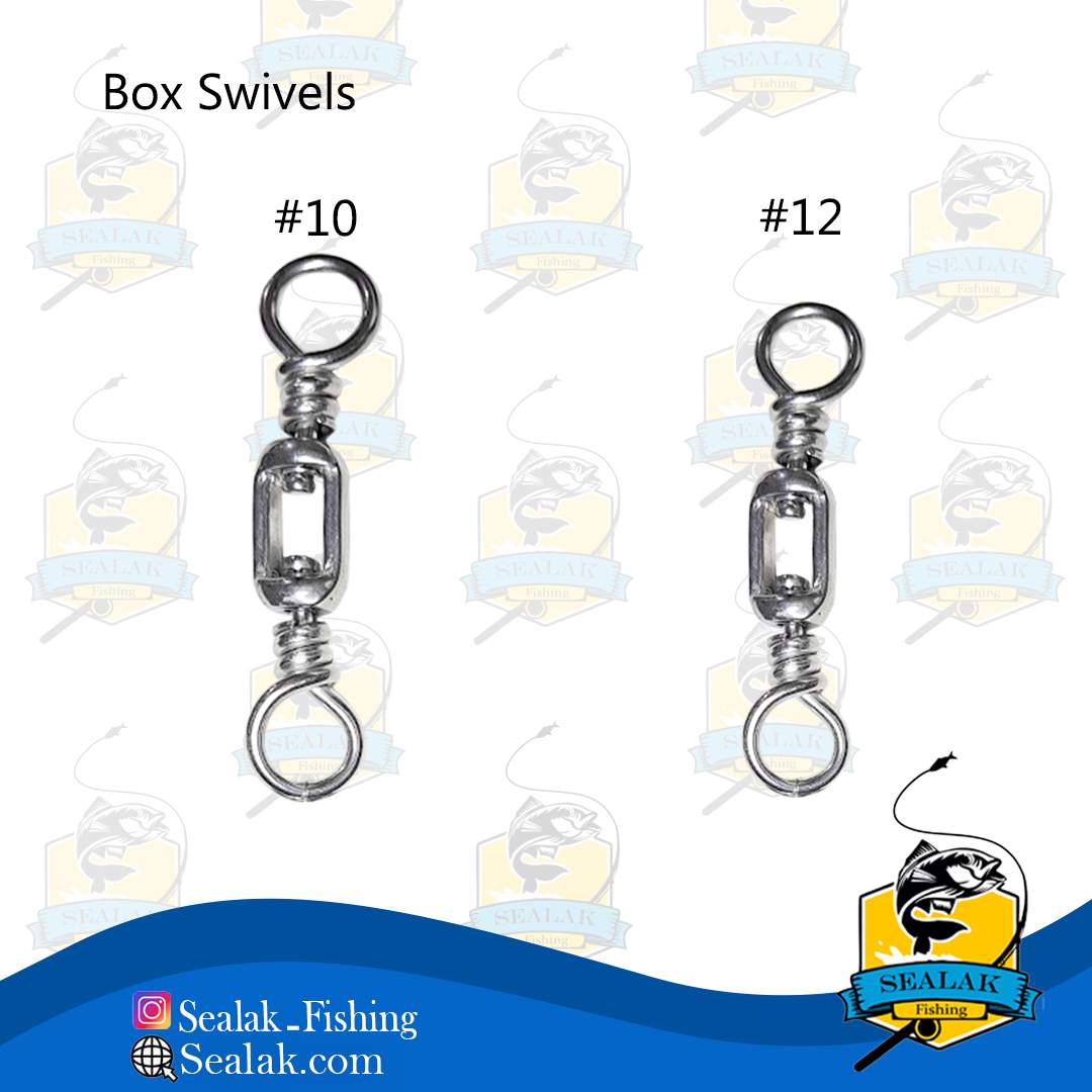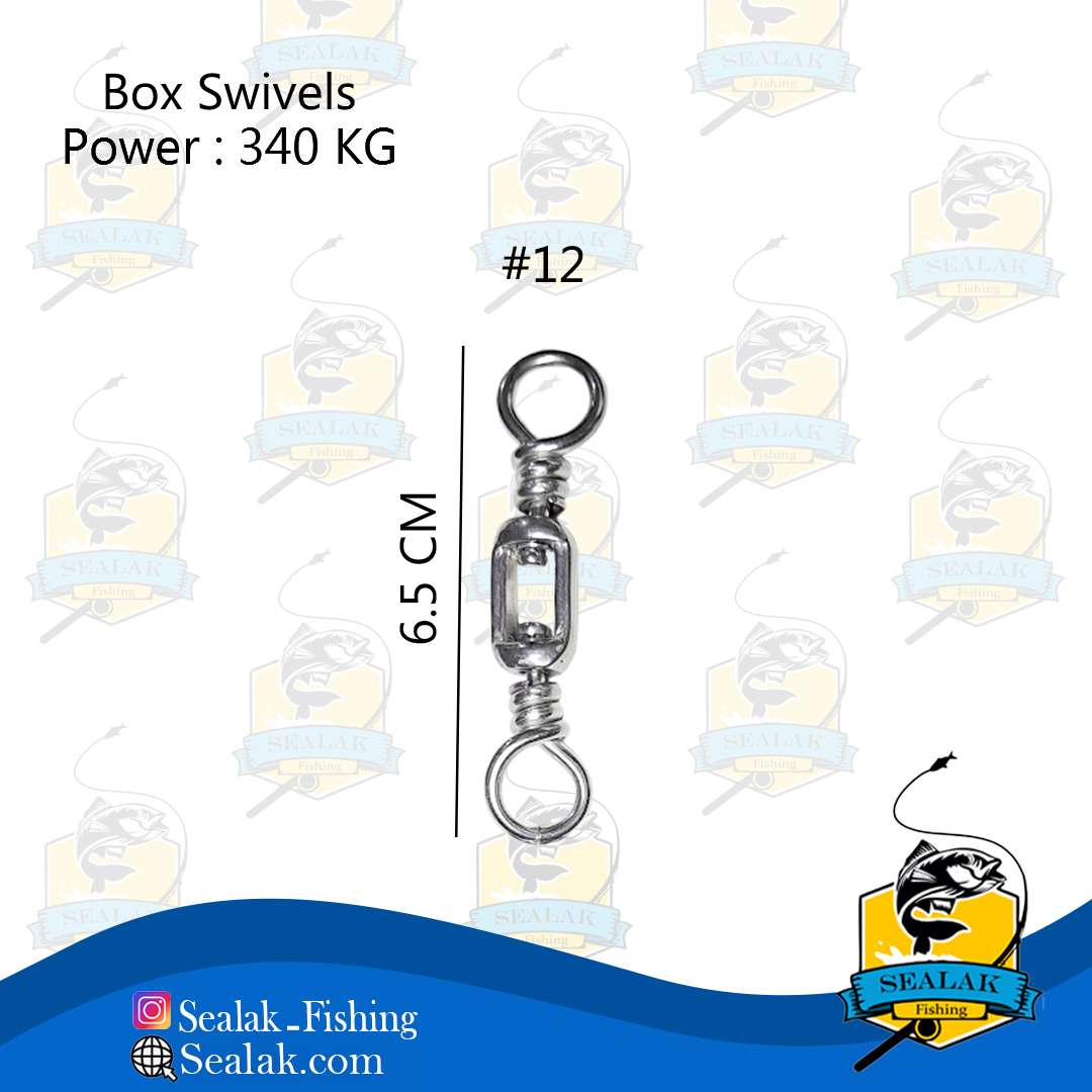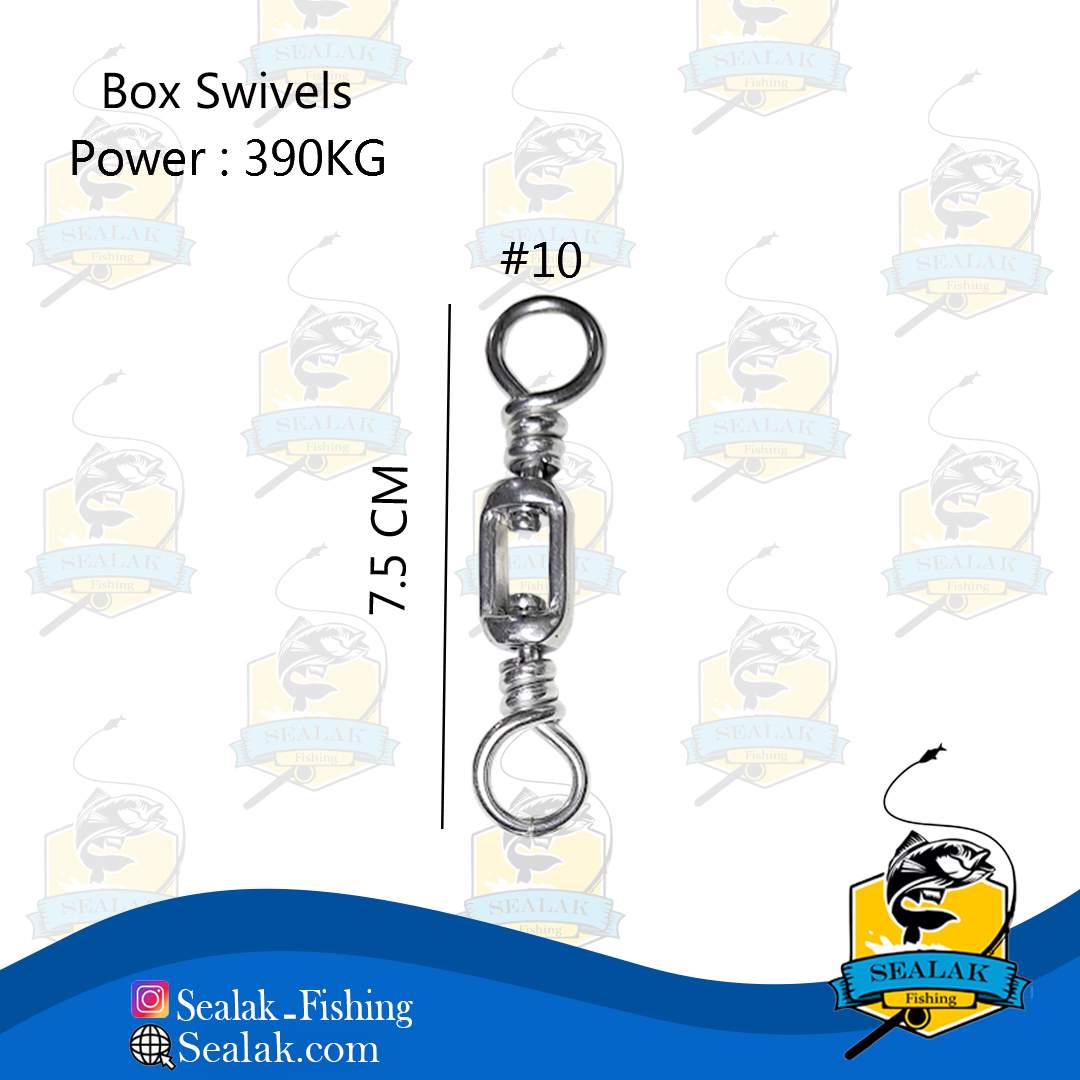 ظاهر مستطیل شکل هرزگردهای Box Swivel ممکن است برای بسیاری از ماهیگیران تازه کار نا آشنا باشد و از کاربردهای فراوان آن در آب شور اطلاعی نداشته باشند . این محصول با توجه به گردش آزائانه در دو طرف به صورت 360 درجه از ایجاد گره و فشار زیاد بر روی نخ در روش ماهیگیری ترولینگ و صید ماهی تن در آب های اقیانوس ها مورد استفاده قرار می گیرد . این هرزگردها جهت تحمل وزن بالا و سخت ترین شرایط در هنگام درگیری با ماهی ، از جنس فولاد ضد زنگ فشرده  طراحی شده اند . این محصول دارای سایز 10 با تحمل وزن 390 کیلوگرم در طول 7.5 سانتی متر و سایز 12 با تحمل وزن 340 کیلوگرم در طول 6.5 سانتی متر ، می باشد .