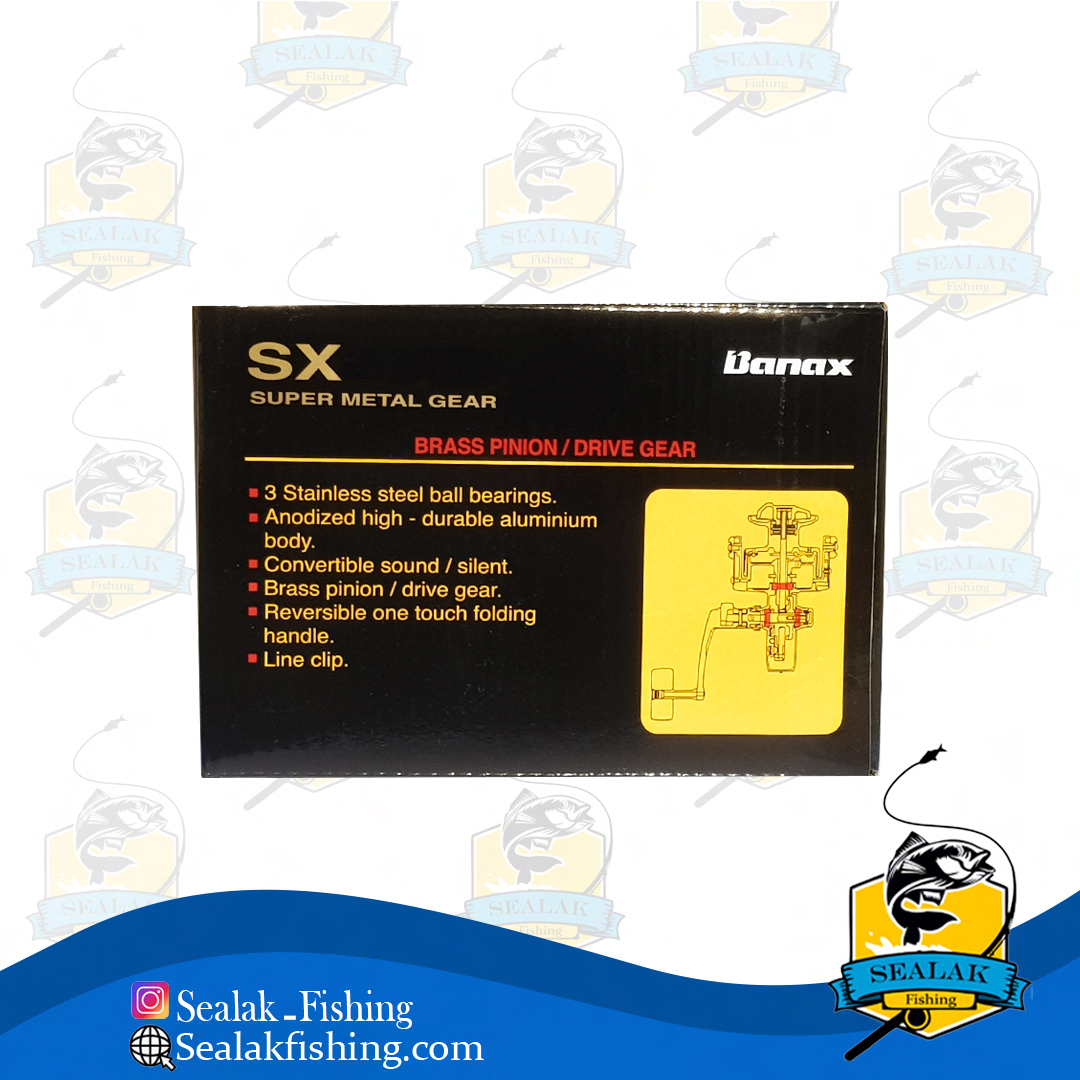 چرخ ماهیگیری برند Banax مدل SX را می توان نمونه ارتقا یافته سری ST دانست. پس از عرضه موفق و استقبال بی نظیر از چرخ های ST ، شرکت کره ای بنکس خانواده چرخ های SX را معرفی نمود. محصولی خارق العاده با فناوری جدیدتر نسبت به مدل قبلی که در دسته چرخ های قدرتی (Heavy Duty) قرار می گیرد. چرخ SX نیز برای ماهیگیری در آب شور طراحی شده و نسبت به سایر چرخ های هم رده خود از قیمت مناسب تر و قدرت بالاتری برخوردار است.