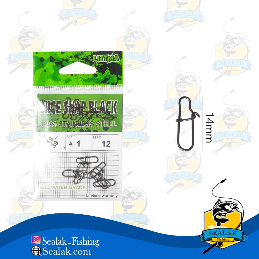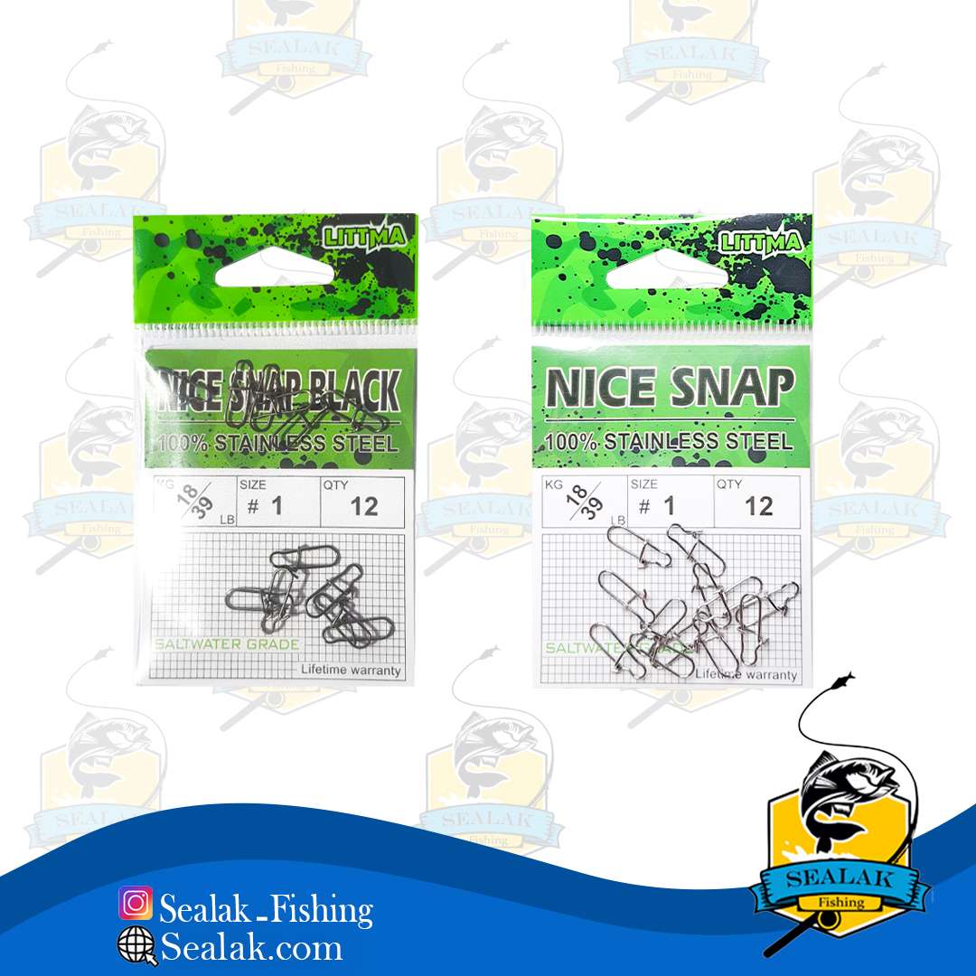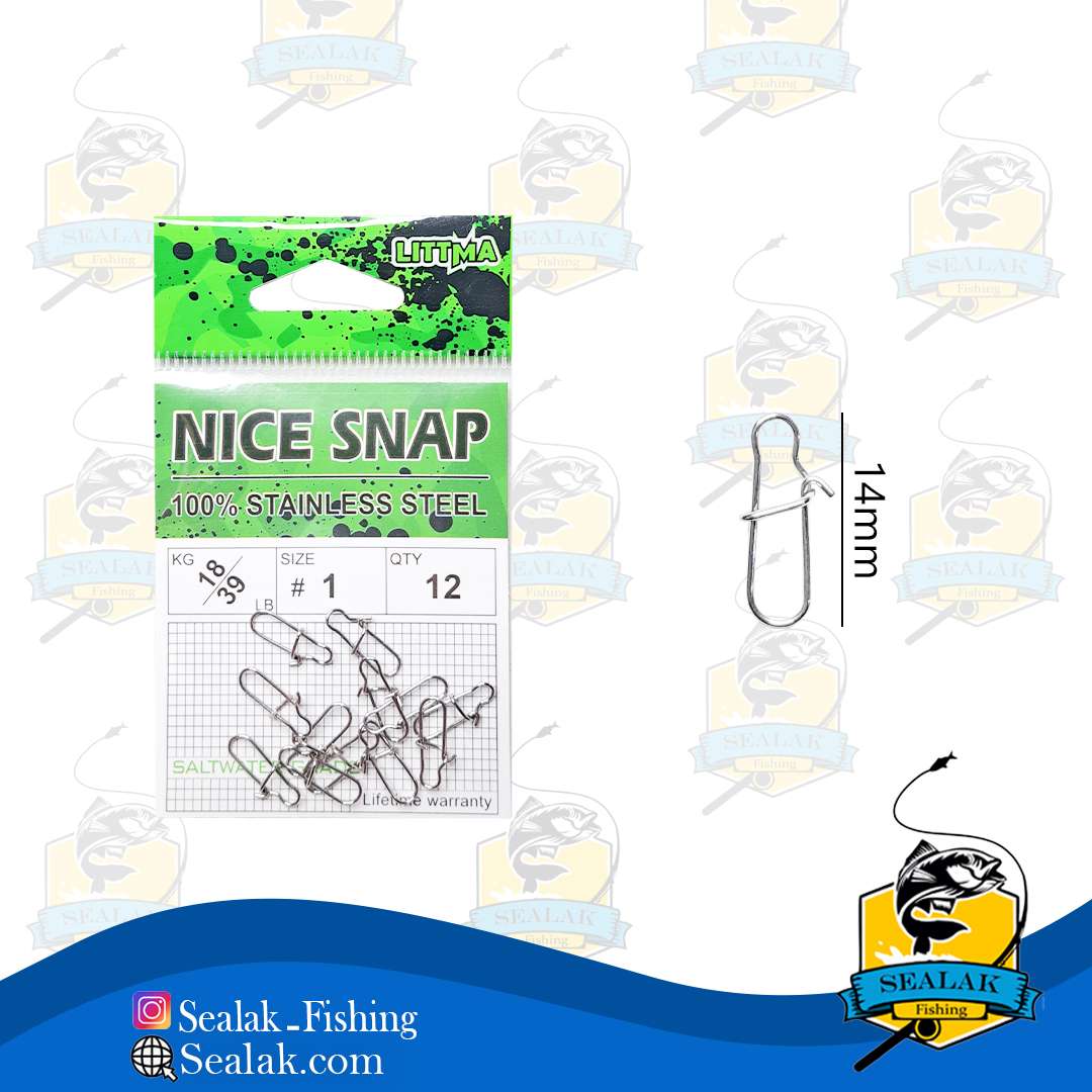 چفت ماهیگیری برند Littma مدل Nice-Snap قابلیت استفاده همراه با بسیاری از طعمه های مصنوعی ماهیگیری را دارد . طراحی این اسنب به شکل 8 می باشد که وجود لبه هایی در دو طرف ، موجب استحکام بیشتر آن خواهد شد و در برابر فشار بالا مقاومت بیشتری دارد و به آسانی باز نخواهد شد . شکل خاص این چفت موجب برتری آن نسبت به چفت ها inter lock شده است و امروزه در بین ماهیگیران محبوبیت بیشتری دارد . استصال چفت ها به حرکت بهتر طعمه ها کمک می کند و همچنین از فشار و ضربه مستقیم به لورها جلوگیری می کند .
